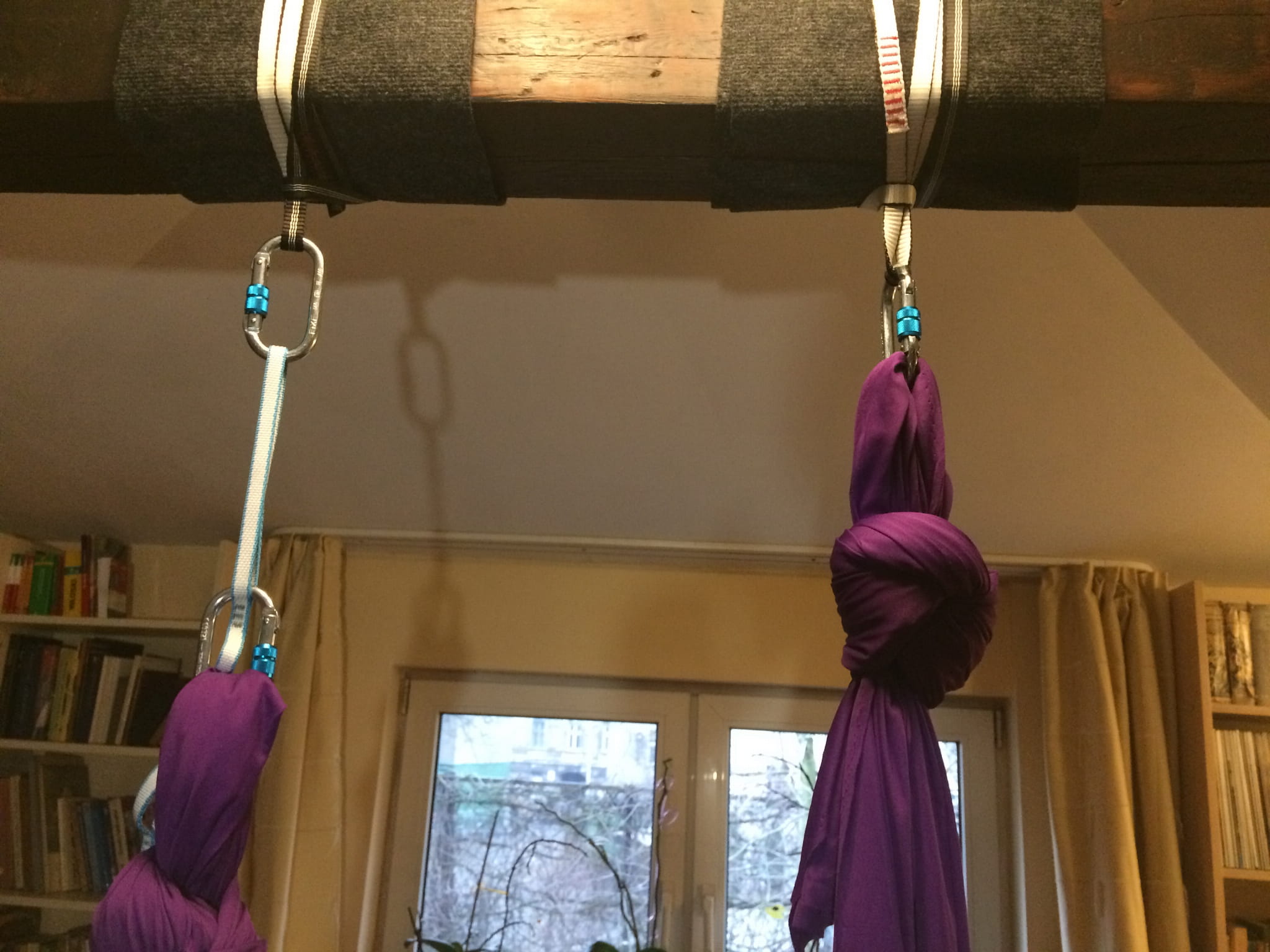 Daisy (safety) chain - zmiana wysokości hamaka za pomocą taśmy z przeszyciami (oczkami)