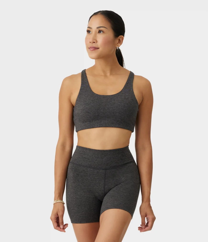 Średnie wsparcie, 4-kierunkowa elastyczność i projekt z plecami w stylu racerback zapewniają pełny zakres ruchów, podczas gdy ultra-miękka i oddychająca tkanina z recyklingu zapewnia komfort przez cały dzień.