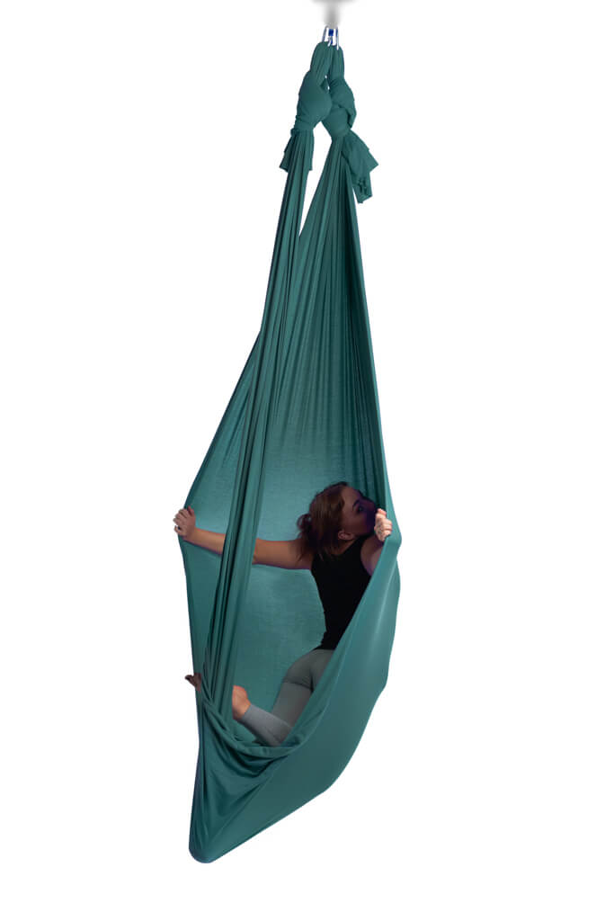 Materiał Natura odpowiednio dopasowuje się do ciała dając nam komfort w pozycjach odwróconych lub stojących czy siedzących z hamakiem.